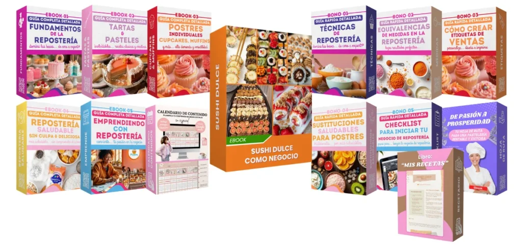 Hoy queremos ayudarte, por eso te ofrecemos un super Ebook de Sushi Dulce como Negocio + Bonos, con varias recetas listas para preparar y ganar.